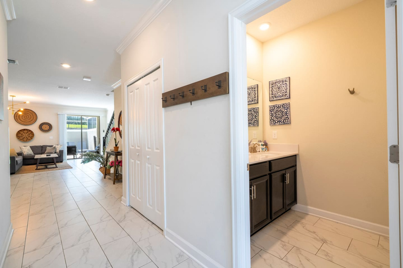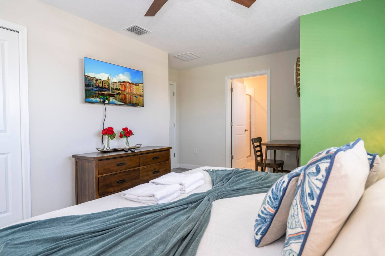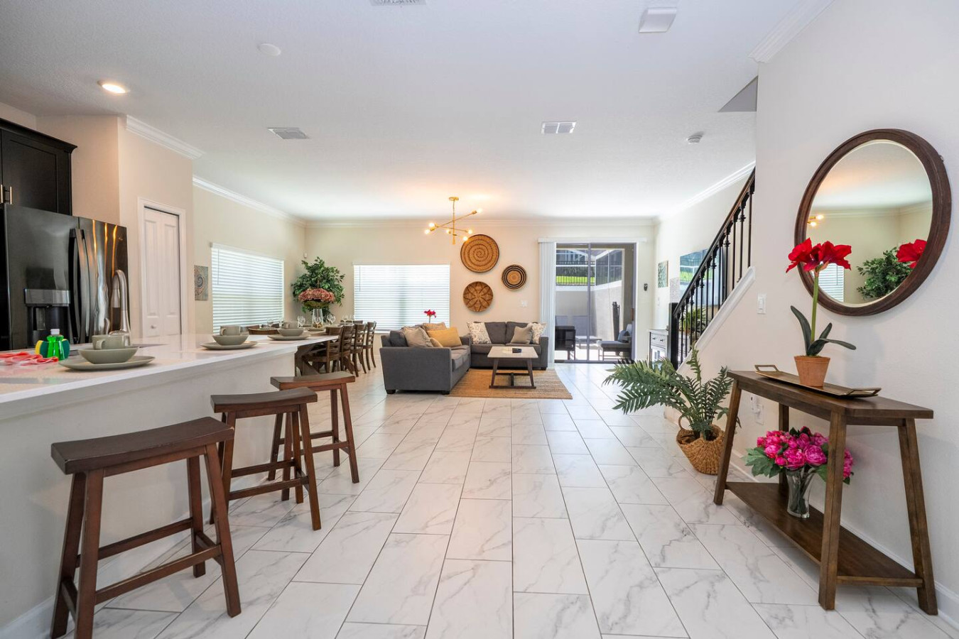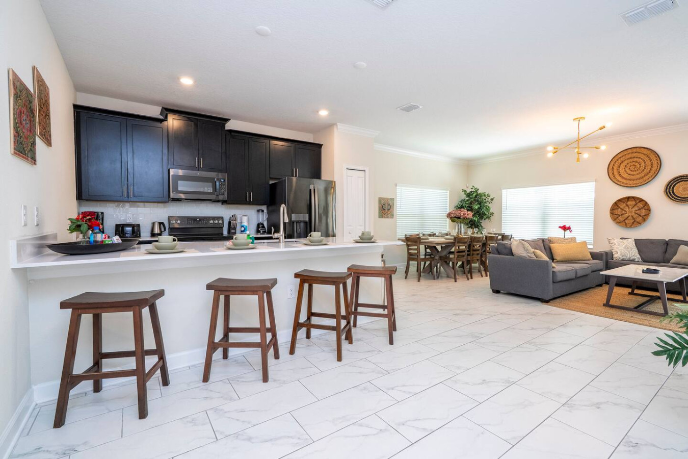 Get ready for the ultimate family getaway! This spacious 5-bedroom townhouse in Champions Gate is packed with everything you need for a magical vacation. Bring the whole crew—there’s room for up to 14 guests to spread out and have fun! With cozy spaces, modern comforts, and access to an amazing resort with pools, lazy rivers, and more, you’re in for non-stop smiles, laughs, and memory-making. Theme parks? Just around the corner. Relaxation? Right at your doorstep. Prime Location for Your Next Adventure! Stay close to everything you need and love: 🛒 Shopping and Essentials: Publix Supermarket: 4 min drive Walmart Supermarket: 19 min drive Walgreens Pharmacy: 6 min drive Restaurants & gas stations: Less than 10 min drive ✈️ Orlando International Airport: 32 min drive 🎢 Disney Parks: Magic Kingdom: 20 min drive Epcot: 20 min drive Animal Kingdom: 19 min drive Hollywood Studios: 19 min drive Disney Springs: 22 min drive 🎡 Universal Parks: Epic Universe: 29 min drive Universal Studios: 28 min drive Islands of Adventure: 28 min drive Volcano Bay: 28 min drive CityWalk: 28 min drive 🌊 Other Attractions: SeaWorld Orlando: 24 min drive Aquatica Orlando: 26 min drive 🏖️ Beaches: Cocoa Beach: 1 hr 20 min drive Melbourne Beach: 1 hr 28 min drive Clearwater Beach: 1 hr 22 min drive St. Petersburg: 1 hr 16 min drive Cape Canaveral: 1 hr 11 min drive This is more than just a vacation rental—it's your gateway to all the fun, magic, and relaxation Florida has to offer! Welcome to The Retreat at Champions Gate, where every day feels like a vacation! Guests have full access to all the amazing amenities of **Champions Gate Resort, with endless ways to unwind and have fun at the **Oasis Clubhouse**: - Soak up the sun in the resort-style pool, complete with a water slide and cozy cabanas - Drift along the lazy river for the ultimate relaxation - Sip a tropical drink at the Tiki bar - Stay fit and fabulous at the fully-equipped fitness center - Enjoy a movie night in the private theater - Let the games begin in the game room - Watch the kids play and laugh at the fun-filled playground - Serve up some fun at the sand volleyball courts - Perfect your swing on the 18-hole golf course with a driving range and putting green - Shop for your next golf outfit at the golf clubhouse and pro shop - Hit the courts for some friendly competition at the 6 clay tennis courts and tennis clubhouse This is not just a resort; it's your adventure, relaxation, and fun all in one place. Ready for the time of your life? 🌴🎉 To make your stay even more enjoyable, we offer the following additional services: Heated Pool: $60 per day BBQ Grill: $60 per stay Mid-Stay Cleaning: $249 Feel free to reach out if you'd like to add any of these to your reservation! STARTER SUPPLIES We’ve provided the following starter items for your convenience: 1 dish sponge 2 dishwasher detergent pods 1 bottle of liquid dish soap 1 roll of paper towels 2 extra trash bags 1 small bar of soap per bathroom 1 small shampoo and conditioner set per bathroom 2 rolls of toilet paper per bathroom 1 laundry detergent pack Salt, pepper, sugar, and cooking oil 1 washcloth per guest (please request in advance) For your comfort, we recommend stopping by the nearest supermarket to pick up any additional supplies you may need for the duration of your stay. House Rules: No Smoking Indoors Smoking inside the property is strictly prohibited. A $250 fine will be imposed for violations, in addition to any costs associated with repairing damage caused by smoking (such as odor removal or cleaning). Pool Care To maintain the cleanliness and safety of the pool, please refrain from throwing trash, foreign objects, or inappropriate items into the water. A $150 fine will apply, along with any costs for pool repair or cleaning if the rule is violated. Waste and Recycling Properly dispose of trash in the designated bins for recycling and general waste. Failure to adhere to this rule will result in an additional cleaning fee of $150 to cover the extra time and effort needed for proper disposal. No Parties or Events Parties, large gatherings, or any unauthorized events are strictly prohibited on the property. A $150 fine will be imposed for violations, and guests may be asked to leave the property immediately without a refund. No Pets Allowed Pets are not allowed on the property under any circumstances. Violation of this rule will result in a $1500 fine, in addition to any cleaning or damage repair costs associated with the presence of a pet. Late Check-out Fee Check-out time is at 10:00AM. Any check-out performed after this time without prior authorization will incur a $150 late check-out fee, in addition to any costs related to delays in cleaning or preparing the property for the next guest. Getting Around For your safety and security, the community has a gate guard at the entrance. All guests must provide the full names of drivers once the reservation is confirmed to be registered for entry. Overflow parking is not permitted. Please ensure all vehicles fit within the designated parking areas. The following vehicles are strictly prohibited within the community: boats, campers, trailers, RVs, motorhomes, recreational vehicles, commercial vehicles or equipment, and construction vehicles of any kind.
