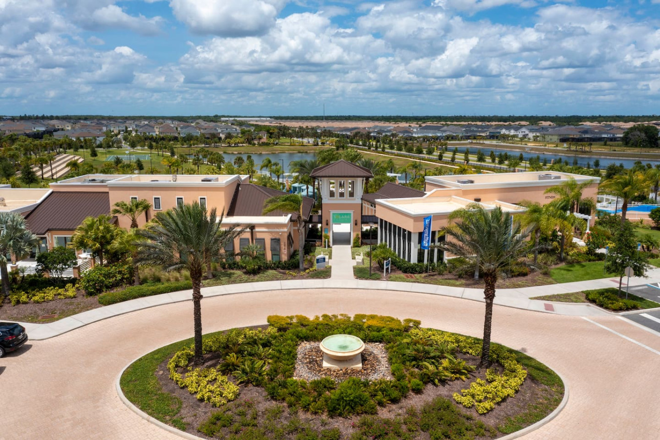 At the heart of the resort is a stunning clubhouse complex featuring a resort-style pool, a FlowRider® surf simulator, splash pad for kids, poolside cabanas, a bar & grill, and cozy lounge areas. Guests can also enjoy a fully equipped fitness center, basketball and volleyball courts, a full-sized soccer field, and scenic walking trails.